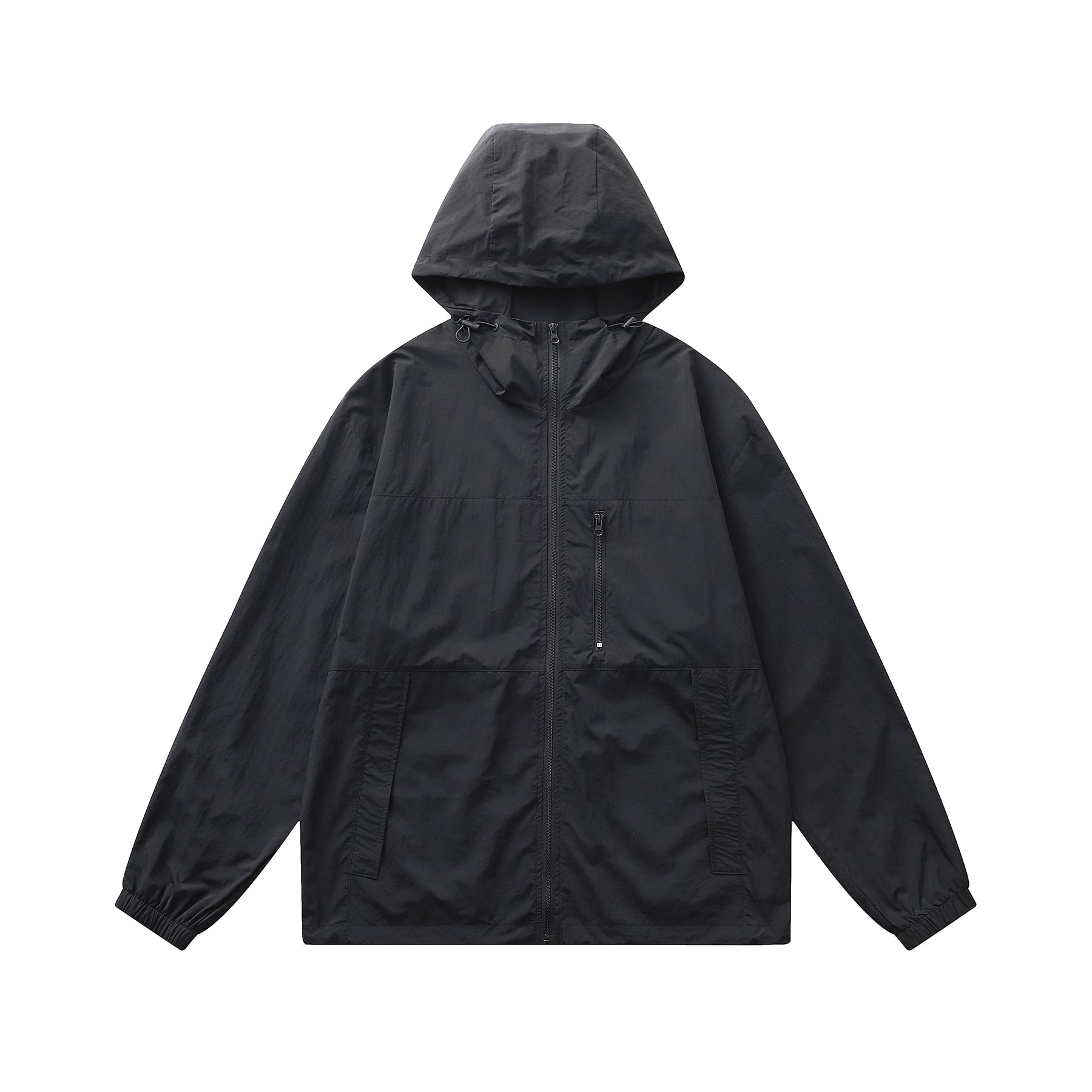 Men's color blocked hooded long sleeved sunscreen jacket in black