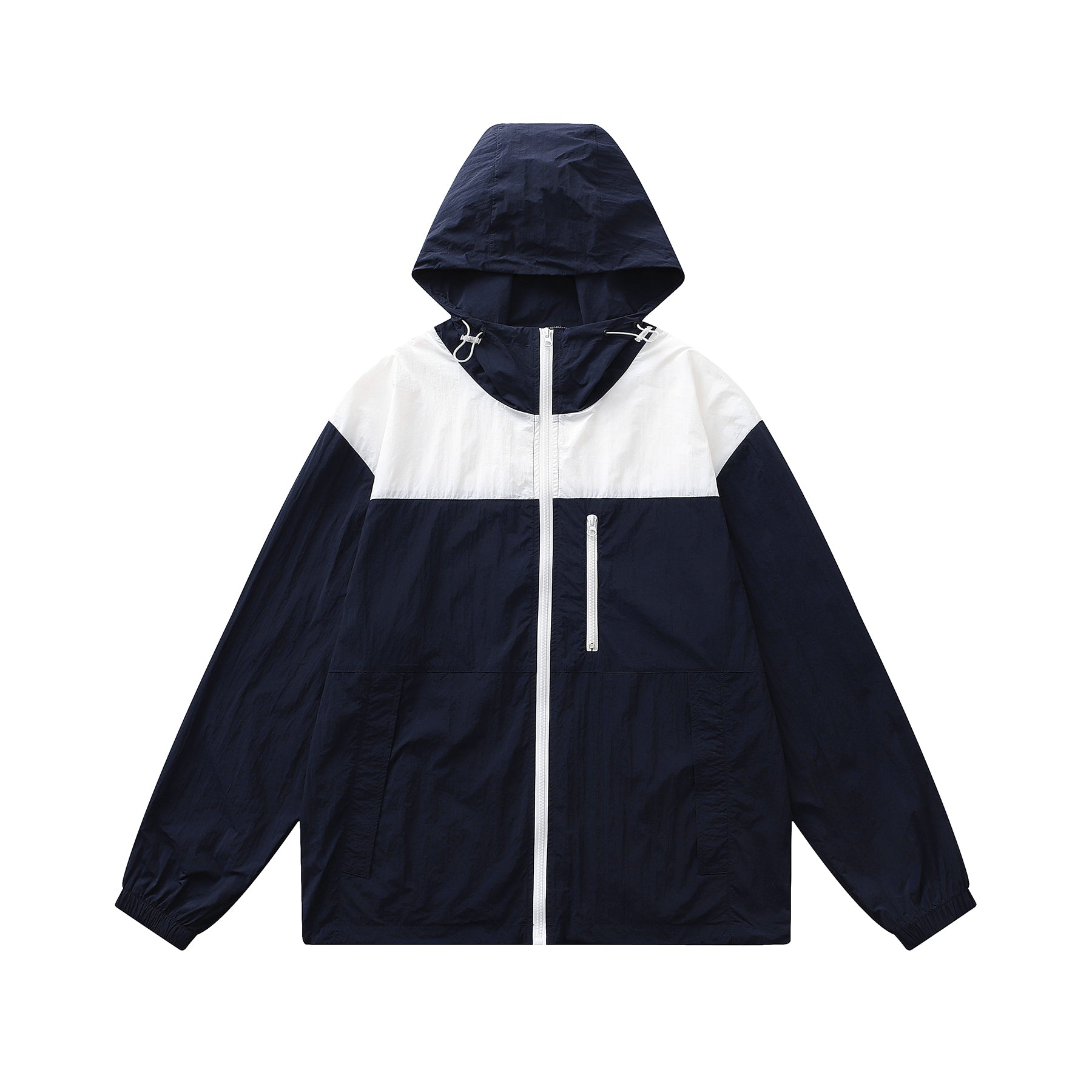 Men's color blocked hooded long sleeved sunscreen jacket in navy blue