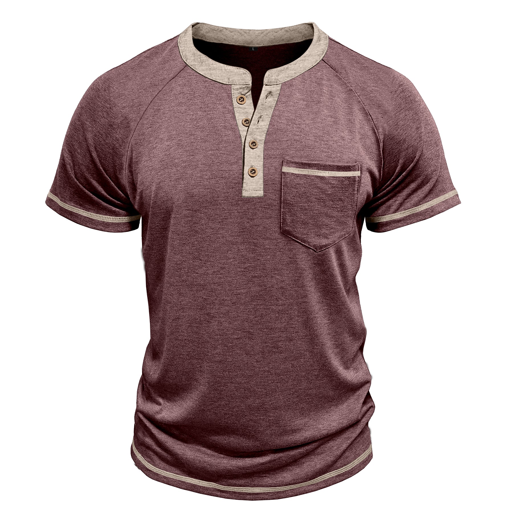 Men's solid color round neck half-breasted loose casual short-sleeved T-shirt dark red