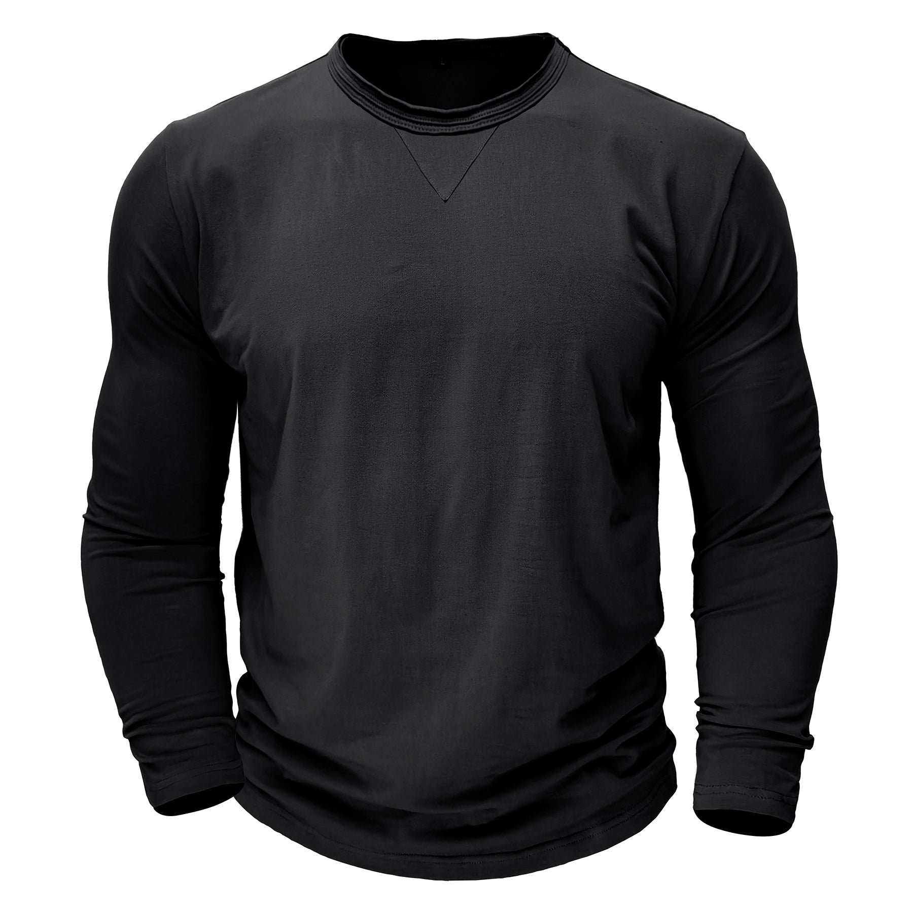 Men's Solid Color Round Neck Long Sleeve T-Shirt Denim Blue