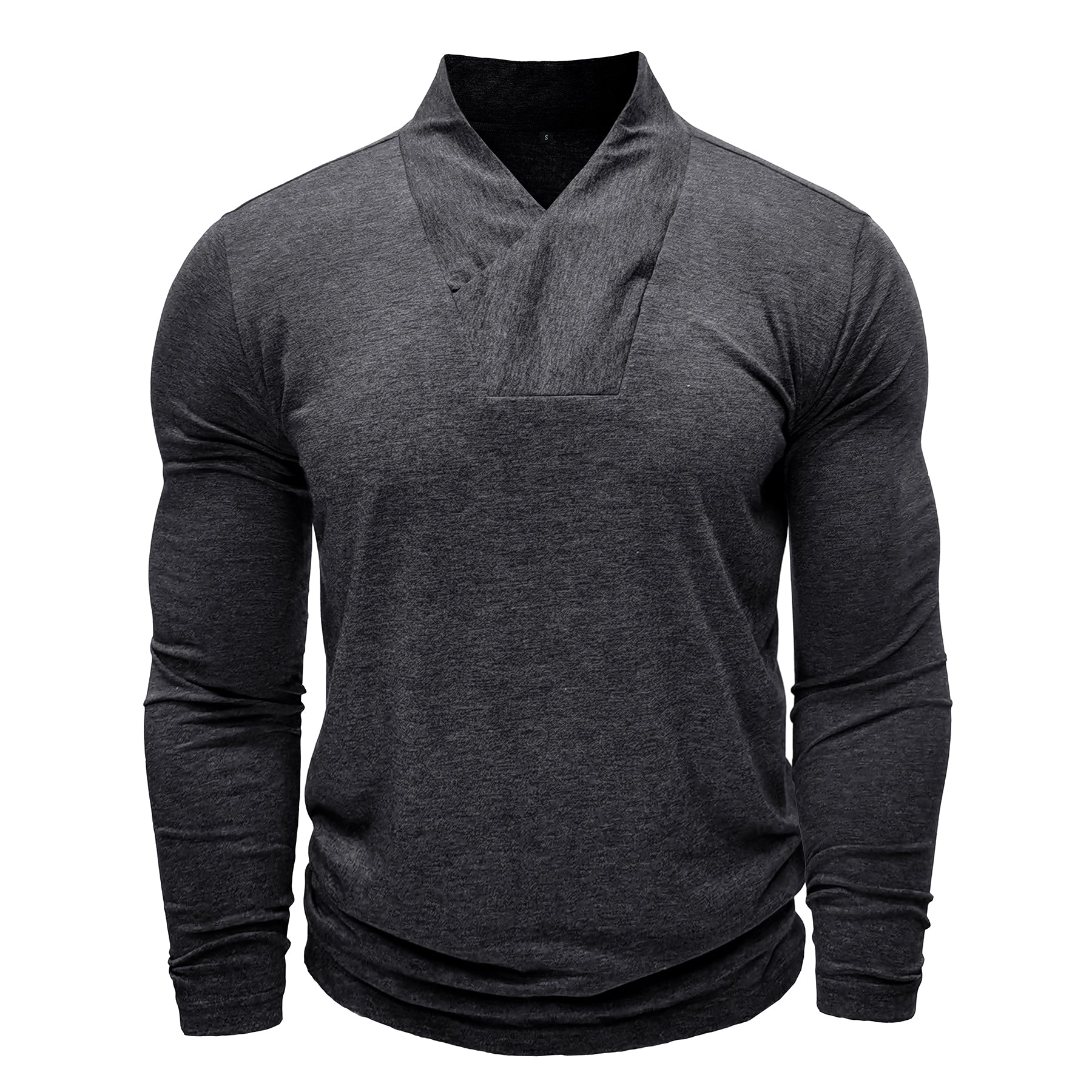 Men's V-neck Solid Color Long Sleeve T-Shirt Light Gray