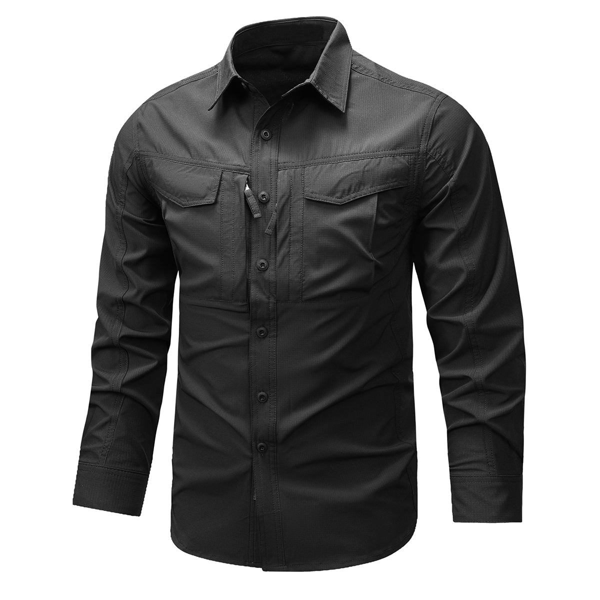 YOUTHUP Men's Military Style Shirts Long Sleeve Slim Fit Button Down Work Tops with Zipper Pocket